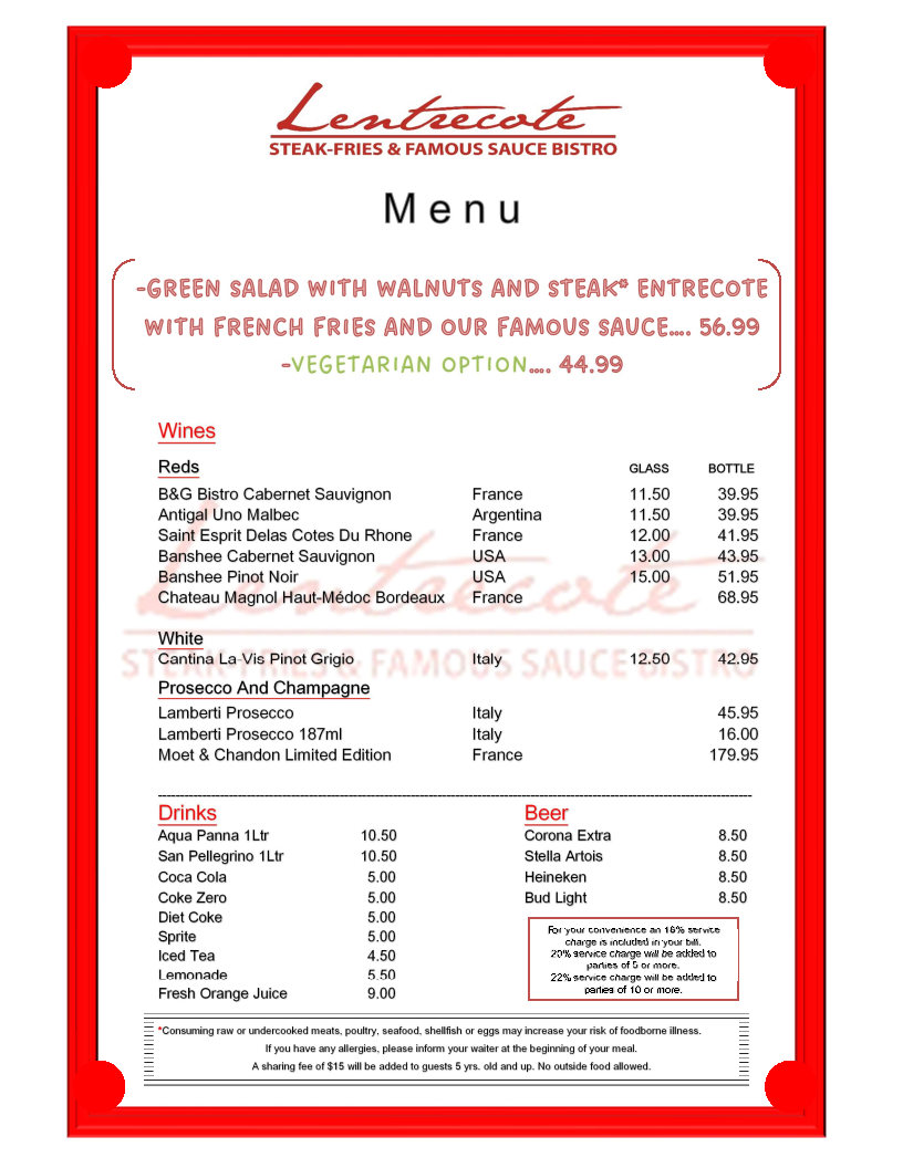 Unforgettable Dining Experience at Lentrecote French Restaurant